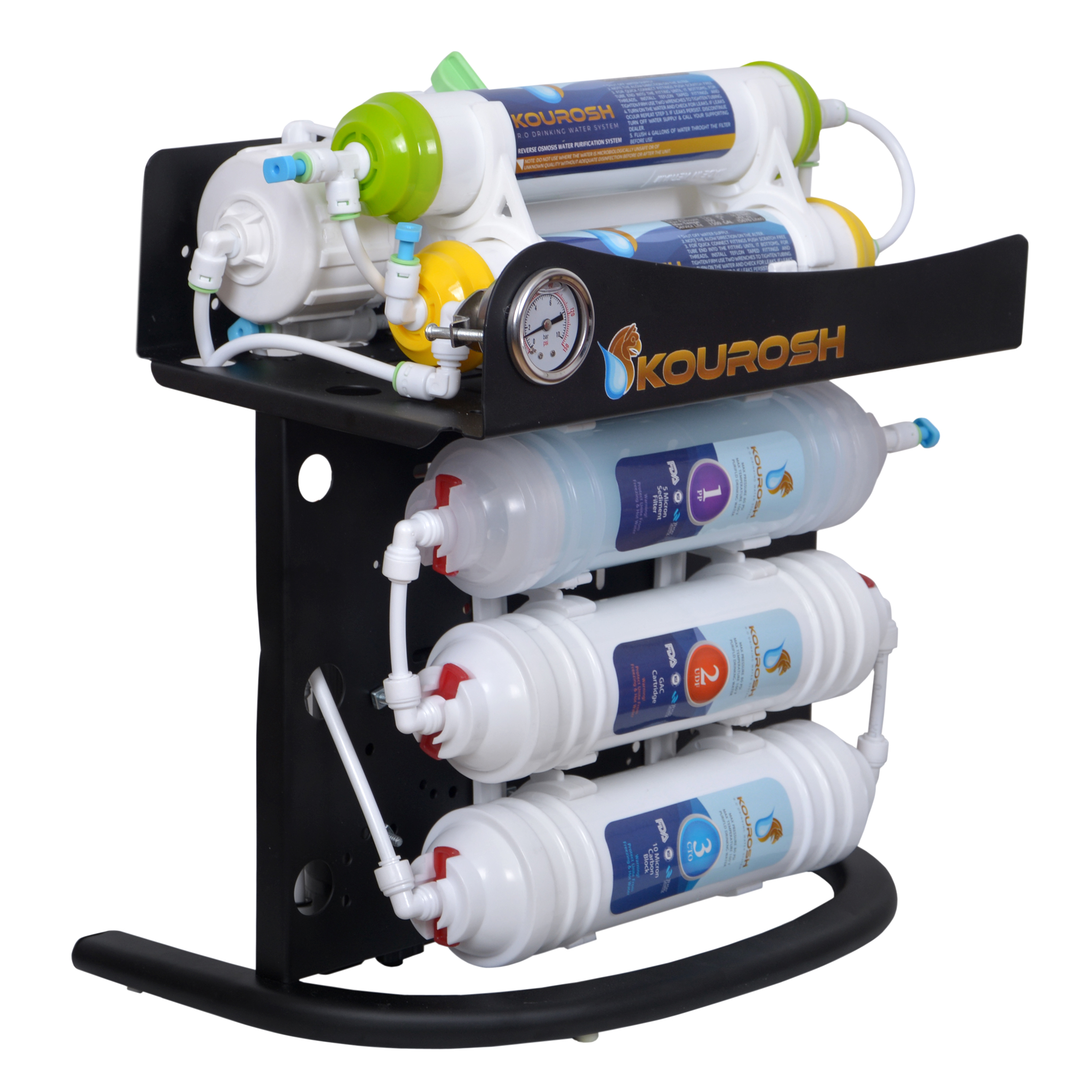 دستگاه تصفیه آب کوروش با طراحی زیبا و کمحجم تولید شده است که به راحتی در فضای زیر سینک آشپزخانه قرار میگیرد.